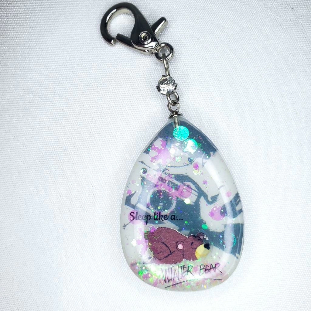Pendente de chaveiro feito todo em resina. Contém uma pedrinha de strass.