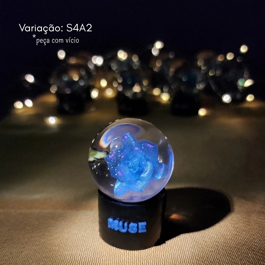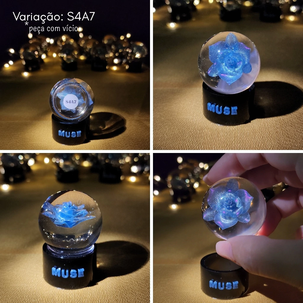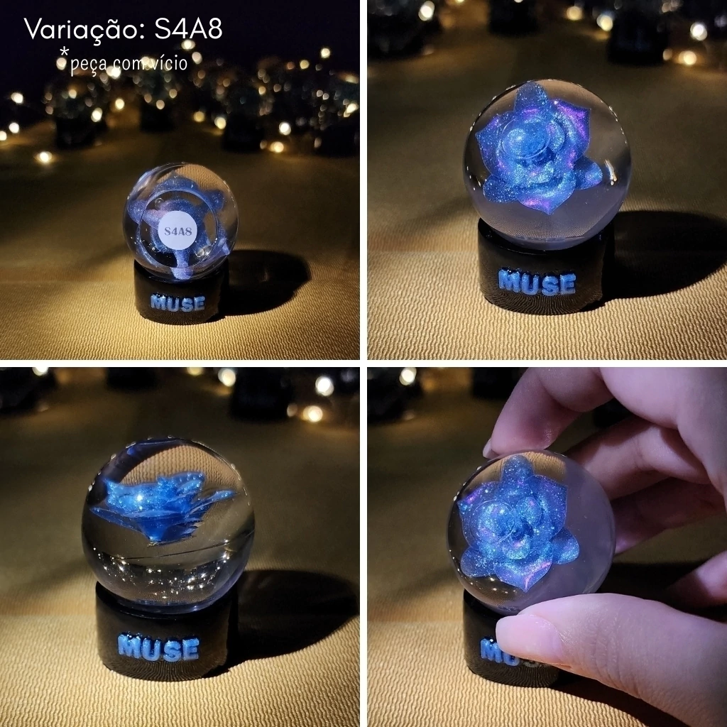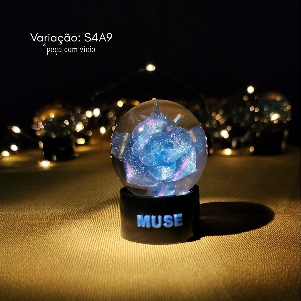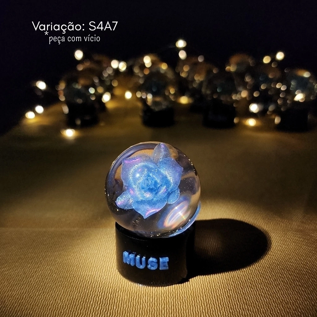 ⚠ A intenção desse produto não é realizar uma cópia do merch oficial que foi lançado. Antes mesmo da divulgação do anúncio do lançamento de Muse, eu já havia lançado aqui na loja uma coleção que foi inspirada na flor de Smeraldo (confira aqui a coleção Smeraldo) e na criação dela fiz um teste de uma bolinha que acabou não dando muito certo e descartei da coleção. Porém, quando alguns clientes tomaram conhecimento desse meu teste pediram para dar mais uma chance e aqui estou lançando ela 1 ano depois de muitos testes e versões feitas, fazendo parte da coleção solo do Jimin.