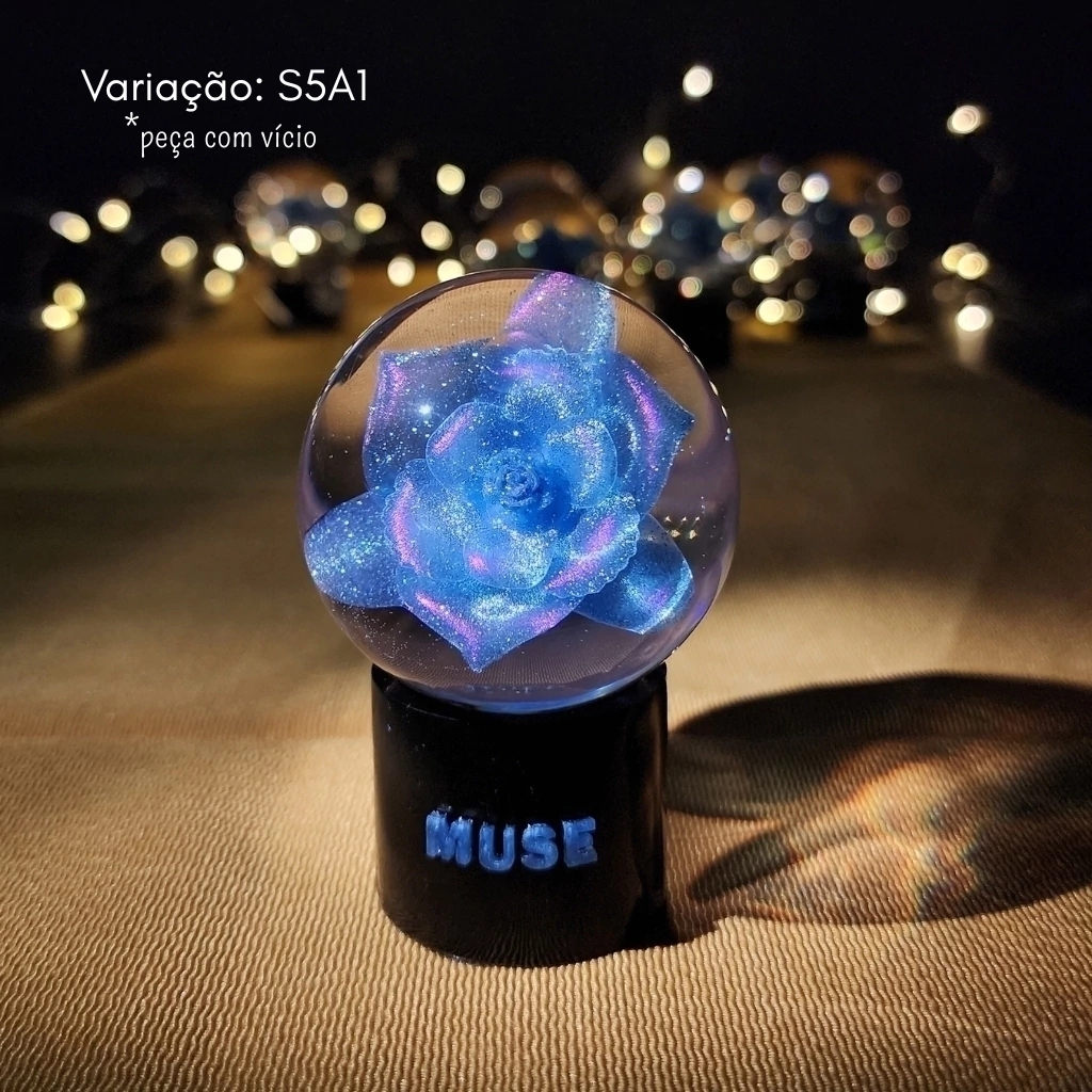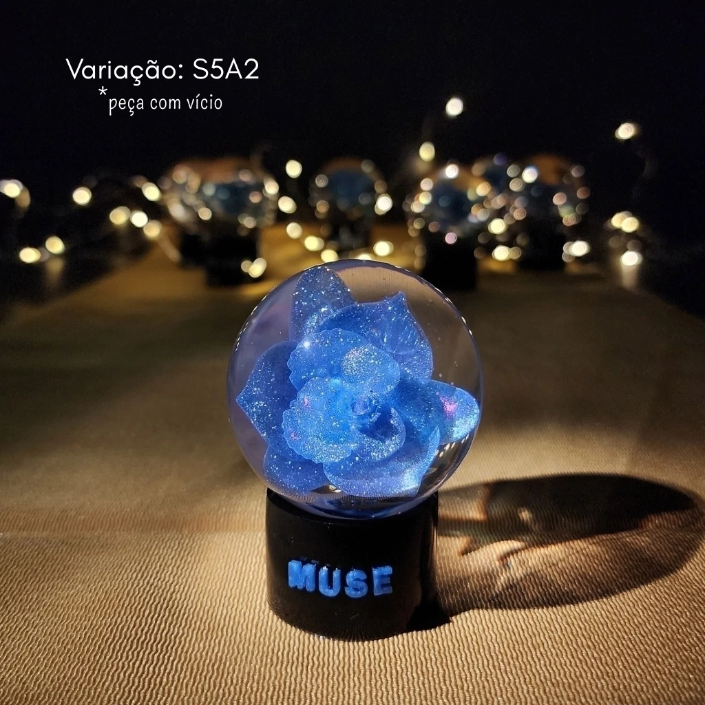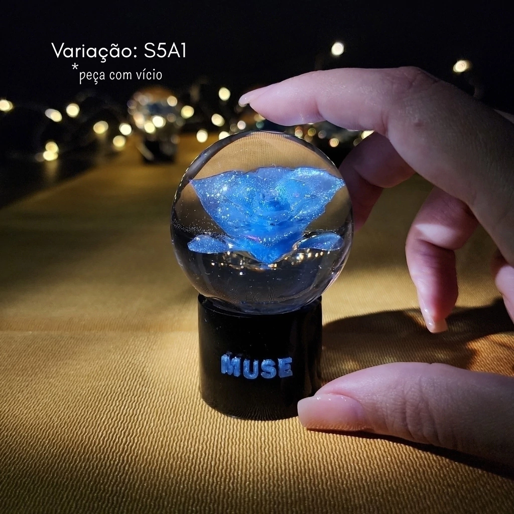 ⚠ A intenção desse produto não é realizar uma cópia do merch oficial que foi lançado. Antes mesmo da divulgação do anúncio do lançamento de Muse, eu já havia lançado aqui na loja uma coleção que foi inspirada na flor de Smeraldo (confira aqui a coleção Smeraldo) e na criação dela fiz um teste de uma bolinha que acabou não dando muito certo e descartei da coleção. Porém, quando alguns clientes tomaram conhecimento desse meu teste pediram para dar mais uma chance e aqui estou lançando ela 1 ano depois de muitos testes e versões feitas, fazendo parte da coleção solo do Jimin.